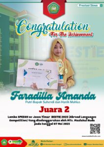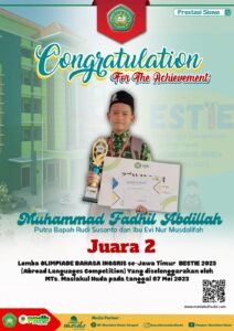 Alhamdulillah, selamat kepada ananda yang telah menjuarai beberapa lomba di event BESTIE (Abroad Languages Competition) yang diselenggarakan oleh MTs. Maslakul Huda pada tanggal 07 Mei 2023
